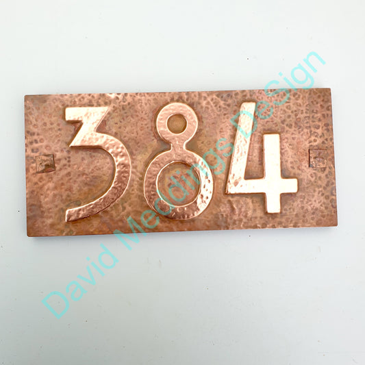 Art Nouveau Copper House plaque in hammered or patinated finish 6"/150mm high numbers amvwt