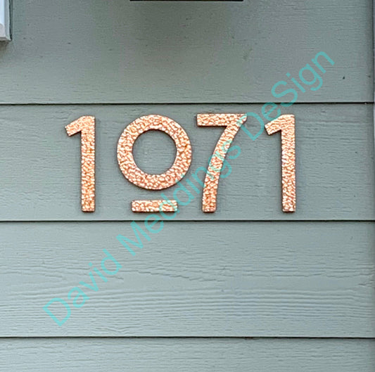 Serif style Copper numbers hammered, polished, brushed or green, 6"/150mm high Garamond font m