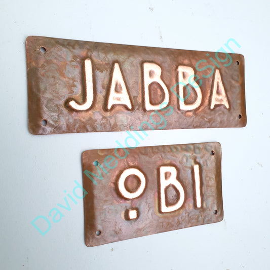 Real Copper Art Nouveau Plaque in metal in 1"/25mm letters, polished and laquered a