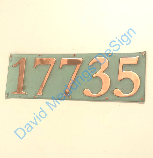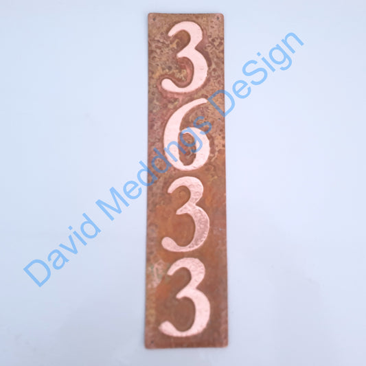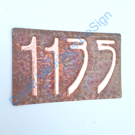 Traditional Copper House plaque in hammered or patinated finish 4"/100mm high numbers vwmat2
