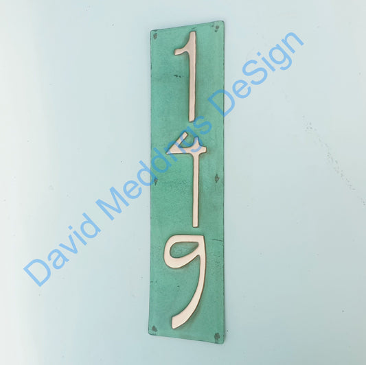 Art Nouveau Copper House plaque in hammered or patinated finish 6"/150mm high numbers amvwt