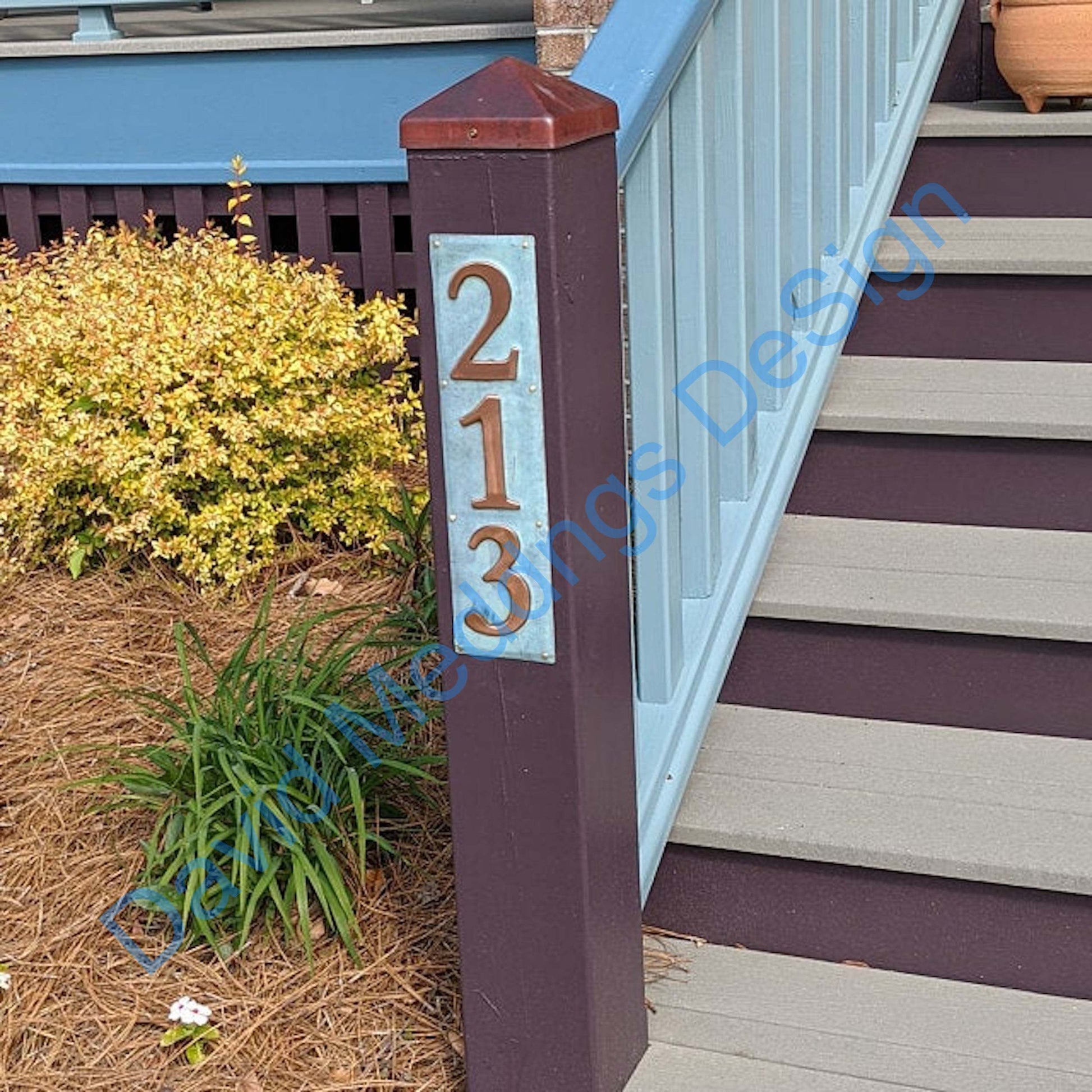 213 in vertical patinated/green copper on post
